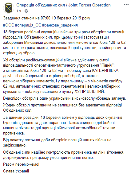 Скриншот: Facebook/ Операція об'єднаних сил / Joint Forces Operation