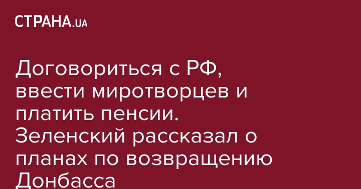 Договориться с РФ, ввести миротворцев и платить пенсии. Зеленский рассказал о планах по возвращению Донбасса