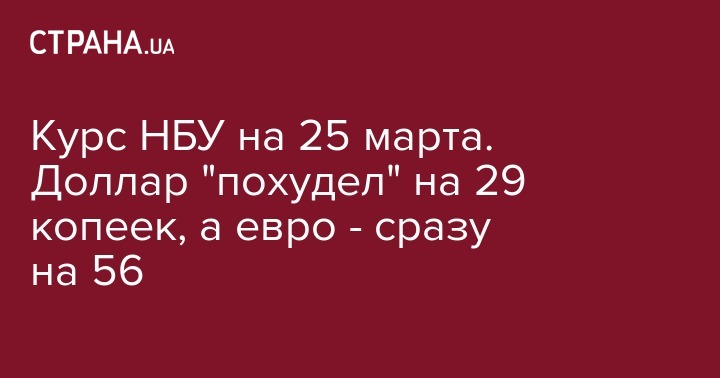 Курс НБУ на 25 марта. Доллар "похудел" на 29 копеек, а евро - сразу на 56