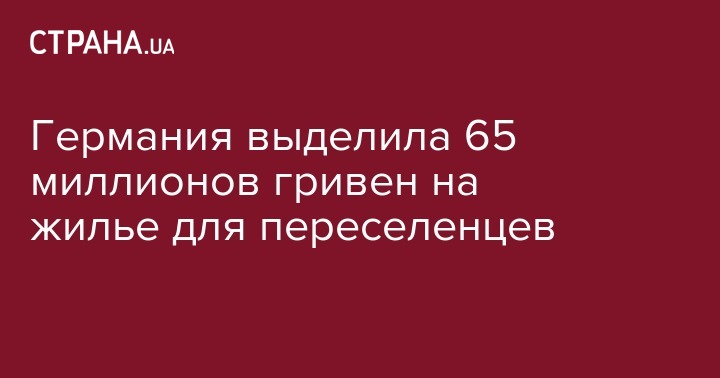 Правительство Германии выделило около 65 млн грн финансовой помощи для переселенцев в Днепропетровской области. На эти средства планируется провести реконструкцию 5 жилых зданий, 4 школ и детского сада, передает "Интерфакс-Украина".