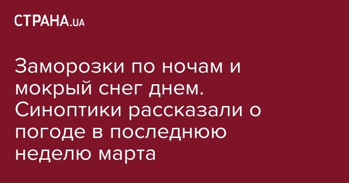 В последнюю неделю марта в Украине в большинстве областей днем ожидается небольшой дождь, местами с мокрым снегом, а по ночам ударят заморозки. Об этом сообщает сайт Укргидрометцентра.
