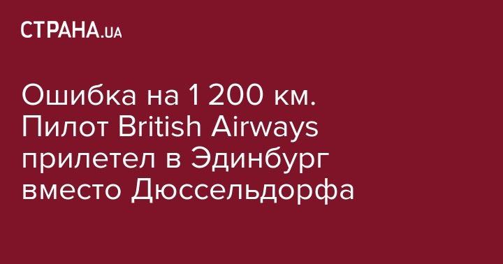 Ошибка на 1 200 км. Пилот British Airways прилетел в Эдинбург вместо Дюссельдорфа