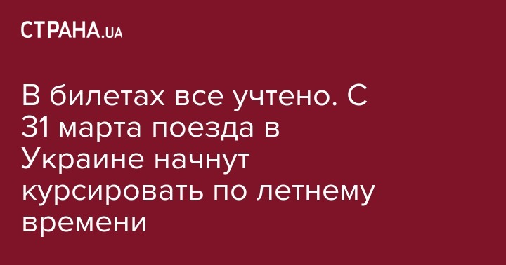 В билетах все учтено. С 31 марта поезда в Украине начнут курсировать по летнему времени