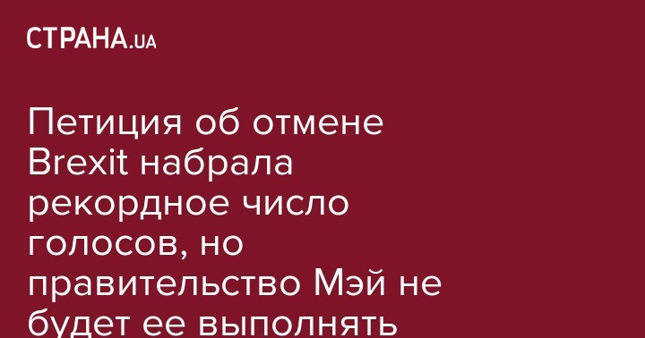 Британское правительство отклонило петицию с требованием остановить Brexit, несмотря на то, что она собрала более 5,8 миллионов подписей. Об этом сообщает The Guardian.