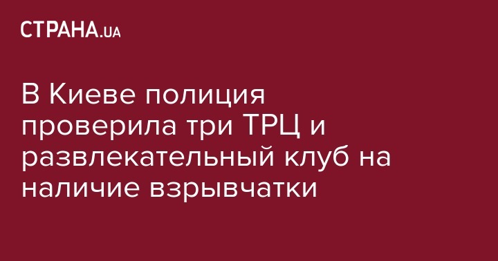 В полицию поступила информация о заложенной взрывчатке в трех ТРЦ (в том числе ТРЦ "Гулливер" и SkyMall) и развлекательном клубе. На местах происшествия работают специалисты всех профильных служб. Об этом сообщает пресс-служба полиции Киева.