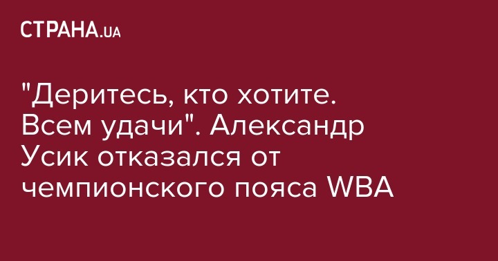 "Организация WBA обязывает меня боксировать с Денисом Лебедевым. Этот бой не состоится, потому что мы с командой решили перейти в супертяжелый вес. По этим причинам мы не можем боксировать с Денисом. Я отказываюсь от пояса. Не хочу, чтобы он просто так у меня был, пусть ребята боксируют, это нормально. Денису - успехов. Всем остальным ребятам, которые будут драться за этот пояс - успехов", - сказал Усик.