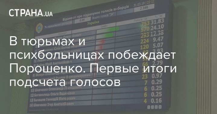 В ЦИК огласили первые результаты первого тура президентских выборов-2019. После подсчета 0,09% (девяти сотых процента) всех голосов, лидирует текущий президент Петр Порошенко с показателем 31,83%, второе место - у Владимира Зеленского (24,10%), третье - у Юлии Тимошенко (12,38%).