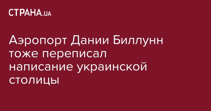 Аэропорт Дании Биллунн тоже переписал написание украинской столицы