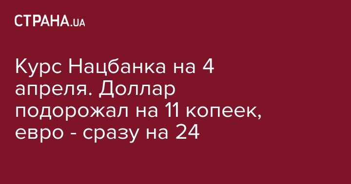 Так, официальный курс гривны к доллару на 4 апреля установлен на уровне 2708,1121 гривен за 100 долларов (+10,6963 гривен).