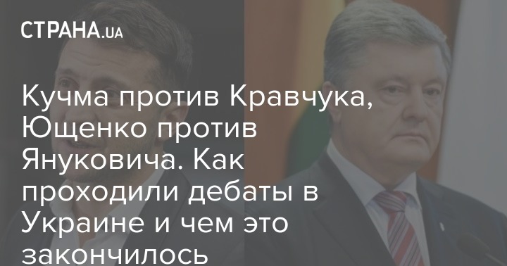 В 1994 Леонид Кравчук встретился с Леонидом Кучмой на дебатах за неделю до второго тура. Тогда Кучма, неожиданно для многих выигравший президентскую гонку, показал, что он более подготовлен. Победа была настолько неожиданной, что когда супруга Кучмы утром после выборов подняла трубку и услышала поздравления из штаба, подумала, что это шутка.