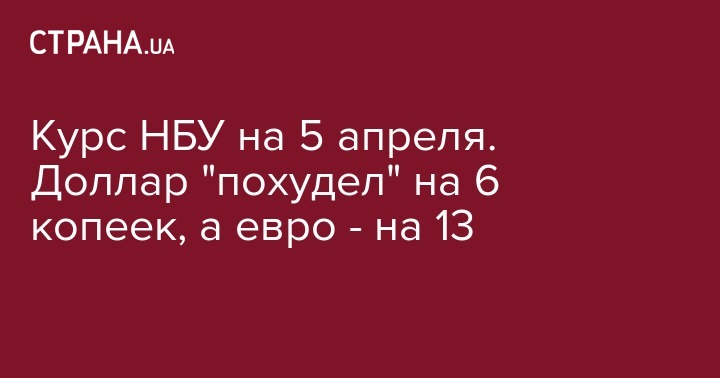 При этом регулятор снизил курс евро на 13 копеек до 30,31 гривен за евро. Официальный курс евро на 5 апреля установлен на уровне 3031,6019 гривни за 100 евро (-13,1285 грн).