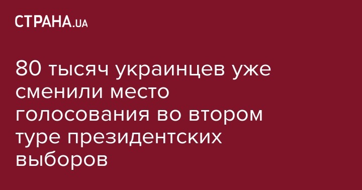 По состоянию на 10 апреля более 80 тысяч избирателей уже изменили место голосования для участия во втором туре президентских выборов. Об этом свидетельствуют данные Государственного реестра избирателей.