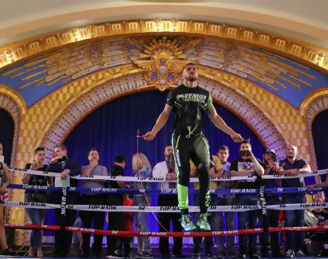 Василий Ломаченко и британец Энтони Кролла провели открытую тренировку перед боем. Она прошла 10 апреля, за два дня до самого боксерского поединка.