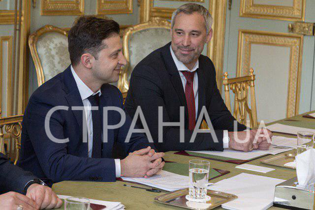 Около 15:00 началась встреча с президентом Франции. Справа от Зеленского - экс-министр финансов Александр Данилюк, слева - бывший замминистра юстиции Украины Руслан Рябошапка.