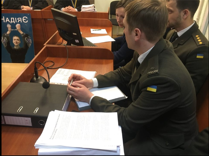 "Было бы интересно осмотреть на заголовки российских газет, как Броварской суд судил Савченко и Рубана без адвоката", - шутит руководитель "Офицерского корпуса". Он также указывает на невозможность продолжения слушания без защитников.