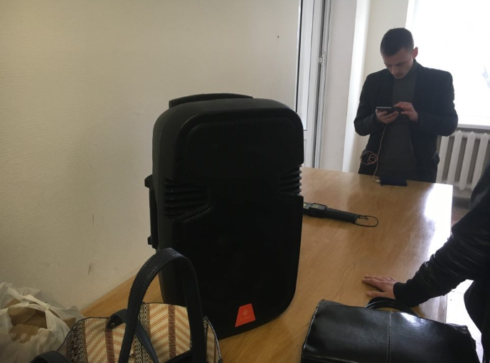 15:30 Прокуроры в зале, судьи - нет. Тем временем на входе продолжается пробка. Камень преткновения - колонка и звуковая аппаратура, которую группа поддержки Савченко пытается пронести в зал.