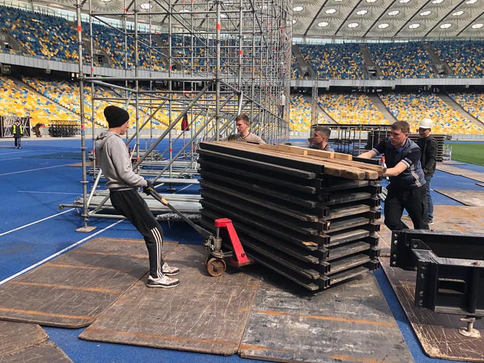 Также министр Жданов опубликовал фото, на которых можно увидеть, какие работы на НСК "Олимпийский" проводят перед дебатами.
