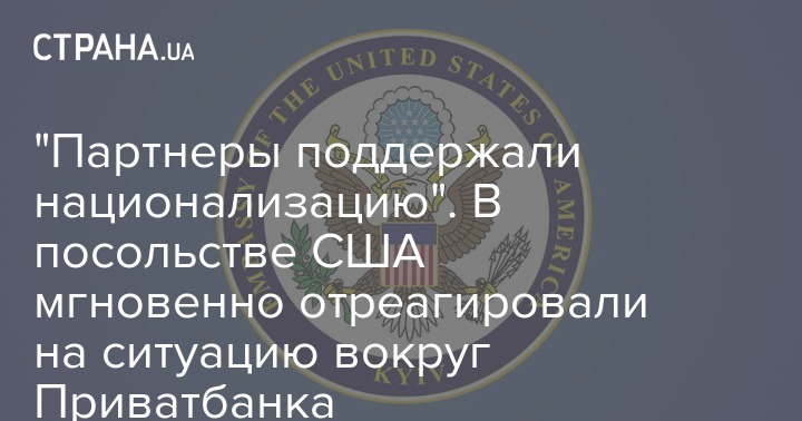 Американские дипломаты мгновенно отреагировали на ситуацию, которая сложилась вокруг Приватбанка, и напомнили, что поддержали решение его национализировать в 2016-м году.