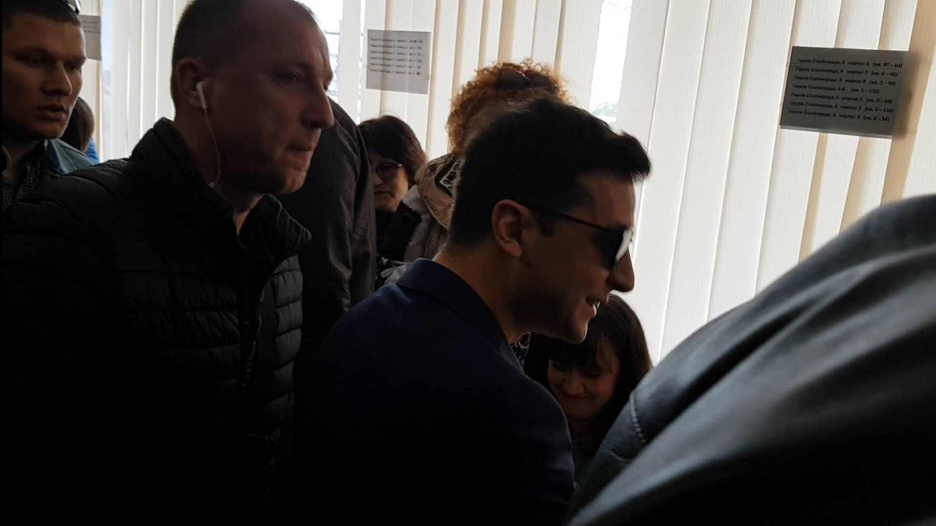 11:18 Зеленский приехал на избирательный участок с женой Еленой и в окружении 12 человек охраны, которая оттесняла СМИ, прокладывая дорогу кандидату.