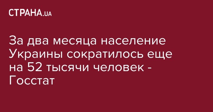 В течение января-февраля 2019 года численность населения Украины сократилась на 51,6 тыс. человек и на 1 марта составила 42 101 700 человек. Об этом сообщила Государственная служба статистики.