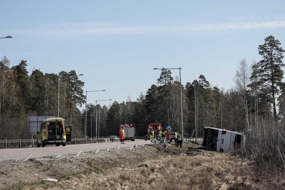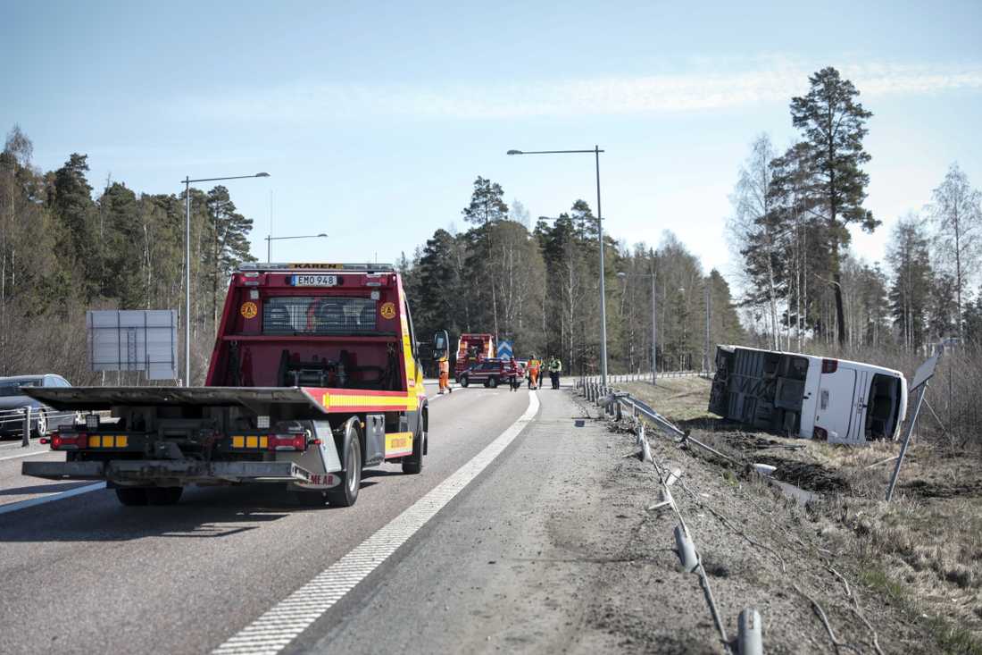 На момент аварии в автобусе было около 29 человек. Они ехали из Осло в Стокгольм. В какой-то момент автобус съехал с дороги в кювет и перевернулся. Причины аварии пока не сообщаются.