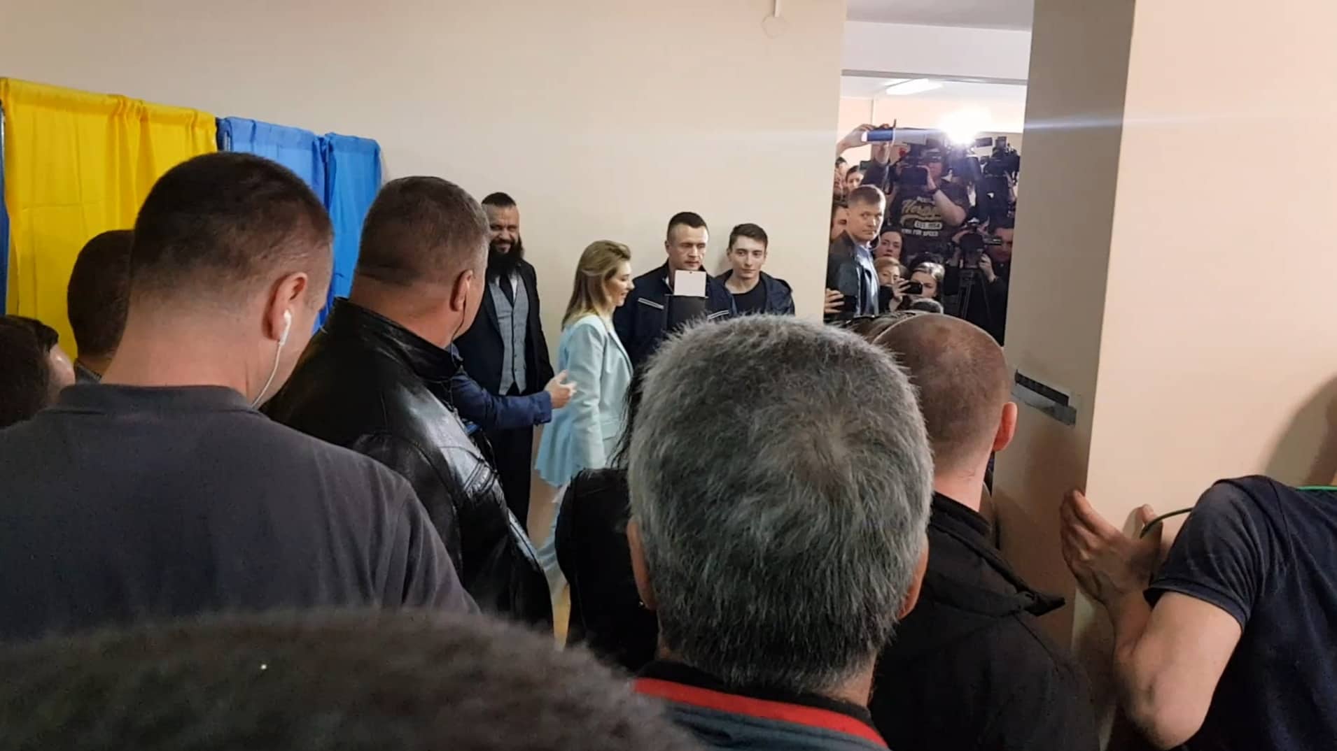 К 11 утра на свой участок прибыл кандидат в президенты Владимир Зеленский. Он приехал вместе с женой Еленой и в окружении 12 телохранителей, которые оттесняли от него представителей СМИ. Шоумен как и во время первого тура, проголосовал на участке в Оболонском районе столицы.