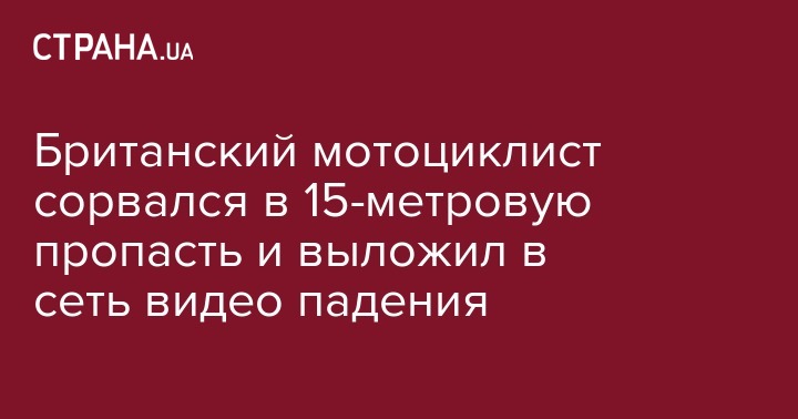 Британский мотоциклист сорвался в 15-метровую пропасть и выложил в сеть видео падения