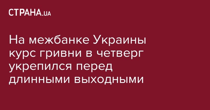 На межбанке Украины курс гривни в четверг укрепился перед длинными выходными