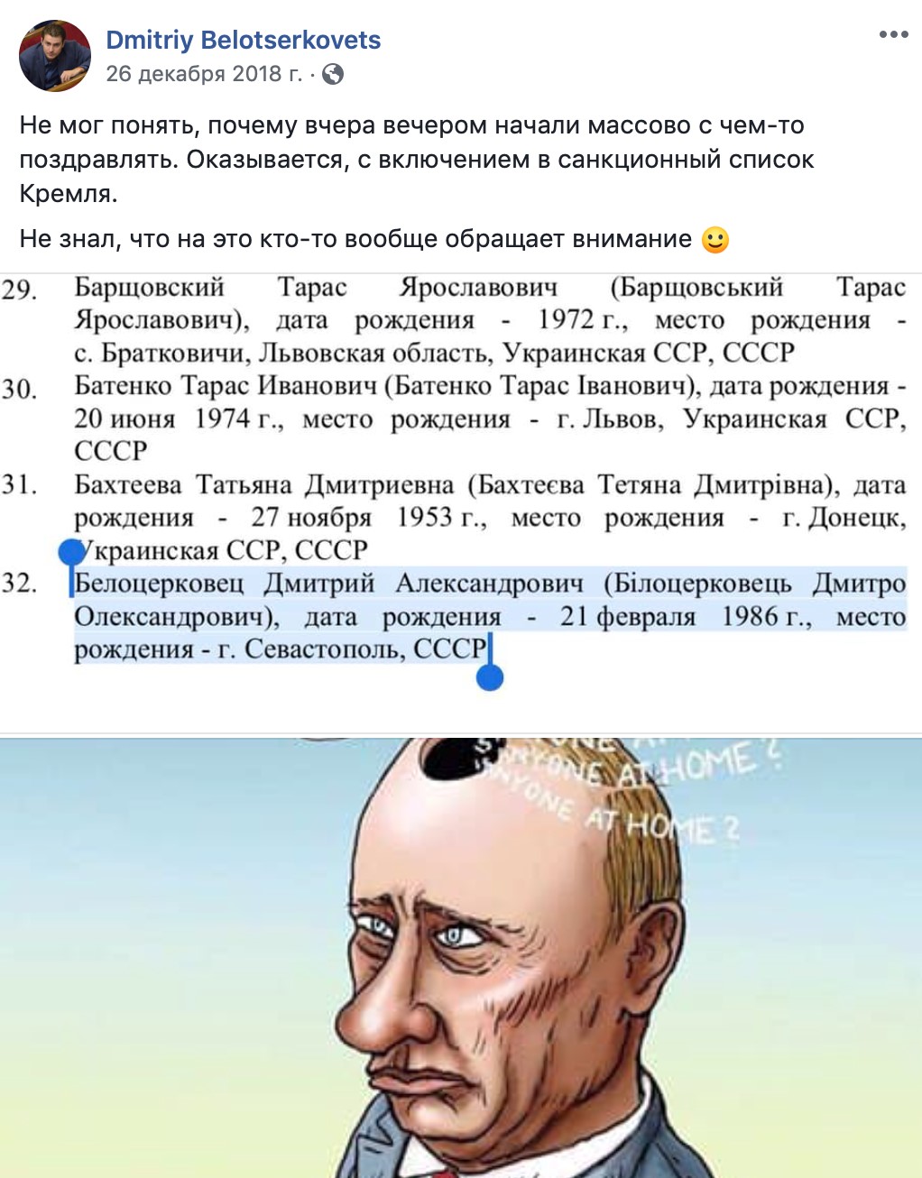 Интересный факт из биографии политика: Дмитрий Александрович 25 декабря 2018 года был включён в санкционный список России. Тогда Дмитрий написал пост в Facebook, стоит заметить, тоже на русском языке.