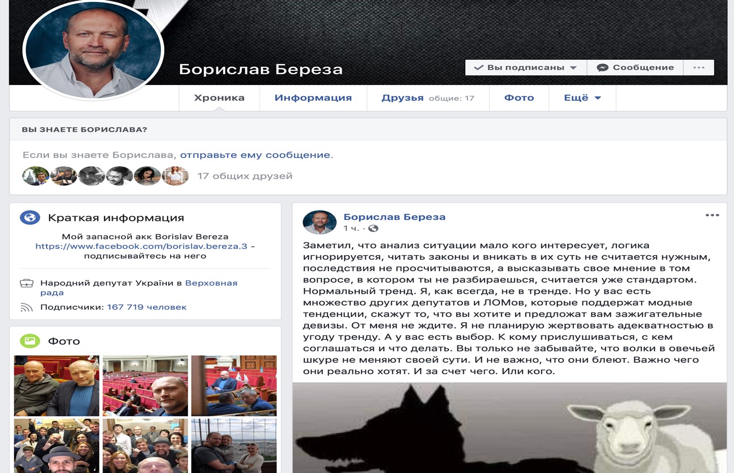 Стоит заметить, что на странице политика в Facebook можно увидеть публикации не только на русском, но и украинском языке.