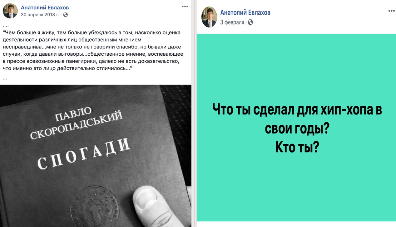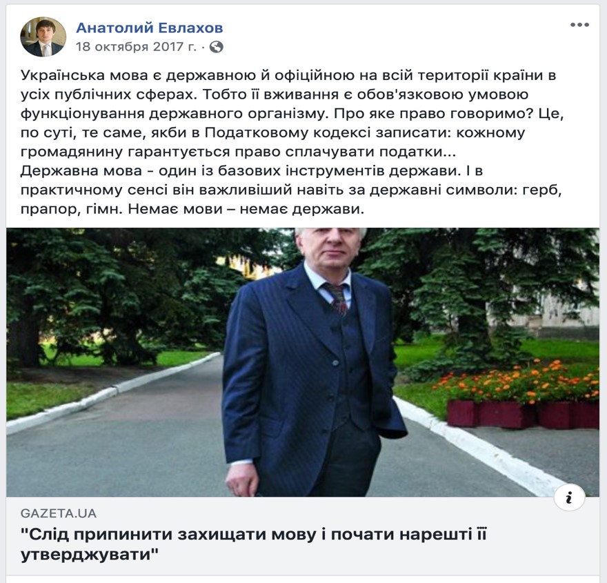 Но сам Анатолий Сергеевич в той же соцсети Facebook излагает свои мысли на русском. Приведём в пример несколько недавних публикаций Анатолия Евлахова.
