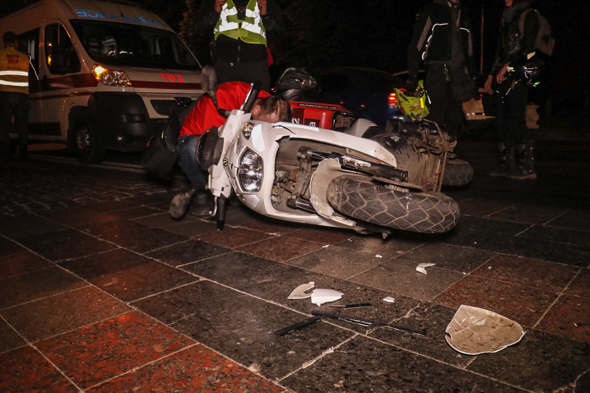 В Киеве в субботу, 27 апреля, произошло ДТП на улице Владимирской, прямо напротив главного корпуса университета имени Тараса Шевченко. Здесь доставщик пиццы на скутере врезался в автомобиль Mercedes. Авария случилась около 22:10. Курьера забрала скорая помощь. Об этом сообщает "Информатор".