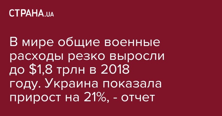 Общие военные расходы в мире выросли до $1,8 трлн в 2018 году, что на 2,6% больше, чем в 2017 году. Об этом говорится в отчете Стокгольмского международного института исследования проблем мира (SIPRI).