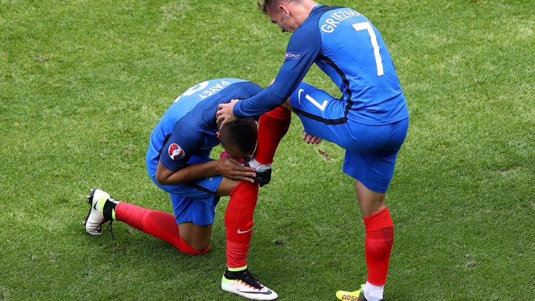 Димитрий Пайе благодарит волшебные ноги Антуана Гризманна, фото: uefa.com