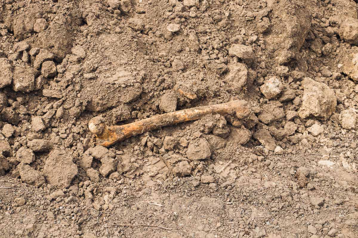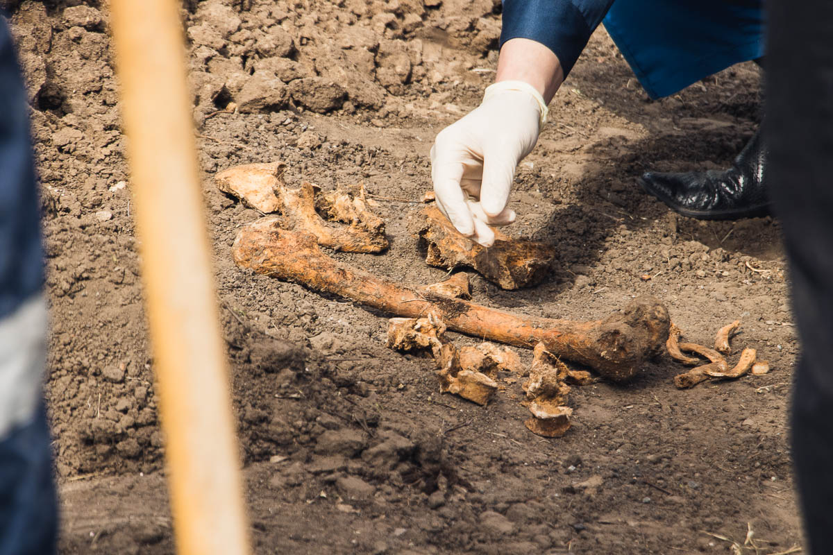 Изначально рабочие нашли кость, напоминающую бедренную. Далее, в присутствии правоохранителей, продолжились раскопки - и обнаружили еще несколько костей. Среди них были кости, напоминающие берцовые, позвонки и фаланги. По предварительной информации, останки действительно принадлежат человеку.