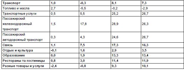 Повышение цен на транспорт в целом на 1% в основном вызвано подорожанием топлива и масел на 2,7% и проезда в железнодорожном пассажирском транспорте на 1,5%.