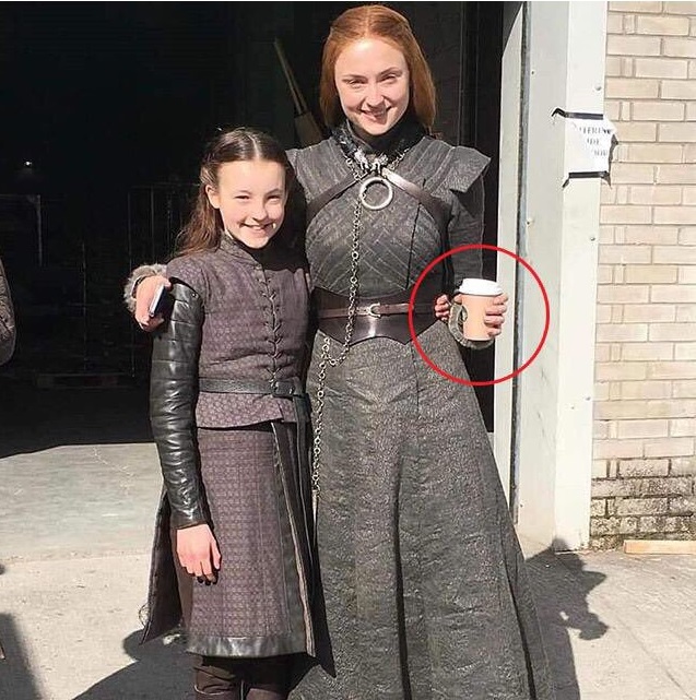 По информации телеканала, в воскресенье в очередном эпизоде сериала "Игры престолов" в кадре появилась одноразовая чашка для кофе с логотипом, якобы похожим на Starbucks. Зрители начали распространять в соцсетях кадры с киноляпом.