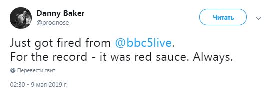 Британский ведущий и комик Дэнни Бэйкер сообщил, что 9 мая его уволили с радиостанции BBC Radio 5 Live за твит о новорожденном сыне принца Гарри и Меган Маркл. Об этом он написал в Twitter.
