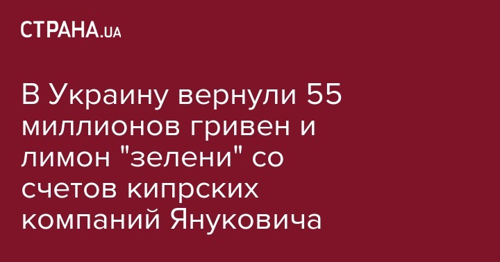 В Украину вернули 55 миллионов гривен и лимон "зелени" со счетов кипрских компаний Януковича
