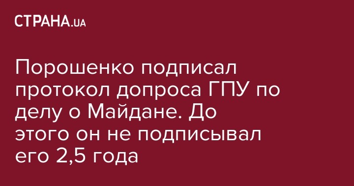 Президент Петр Порошенко подписал протокол допроса по делам о преступлениях против евромайдановцев, который до этого не подписывал с ноября 2016 года.