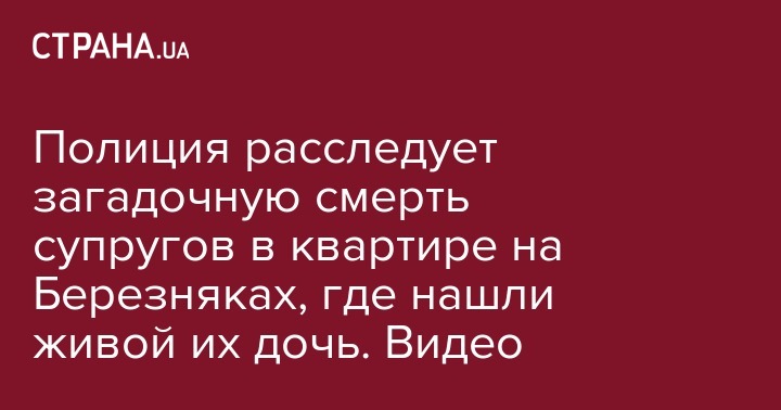 Полицейские расследуют смерть супругов в Днепровском районе Киева. Мужчину и женщину обнаружили мертвыми в одной из многоэтажек на Березняках, рядом с телами была найдена истощенная двухлетняя девочка. Об этом сообщает пресс-служба полиции Киева.
