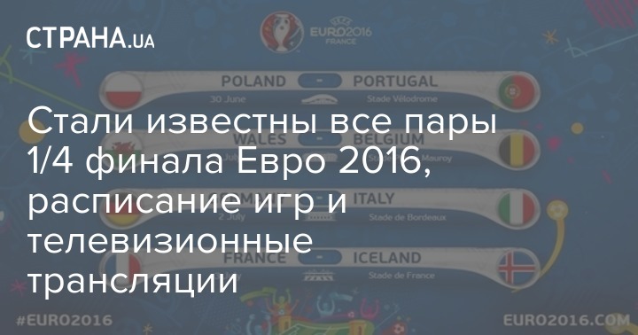 Стали известны все пары 1/4 финала Евро 2016, расписание игр и телевизионные трансляции