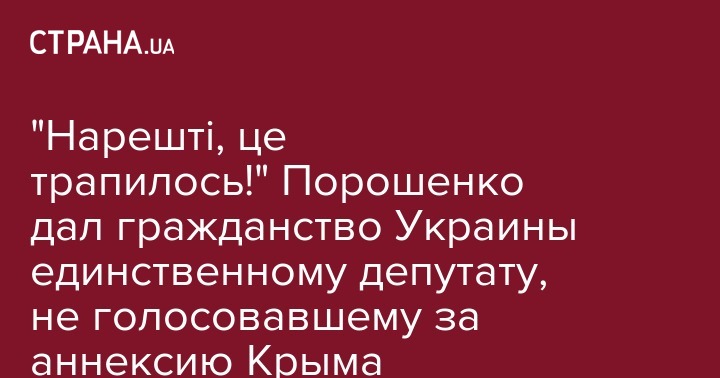 "Нарешті, це трапилось!" Порошенко дал гражданство Украины единственному депутату, не голосовавшему за аннексию Крыма