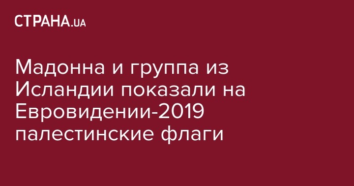 Американская поп-звезда Мадонна и исландская группа Хатари, которые выступили в финале "Евровидения-2019" в Тель-Авиве, продемонстрировали палестинские флаги на сцене к неудовольствию организаторов международного песенного конкурса. Об этом сообщает metro.co.uk.