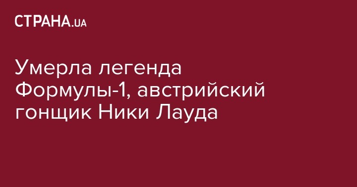 В понедельник, 20 мая, в Вене умер легендарный автогонщик "Формулы-1" Ники Лауда. Об этом пишет AFP.