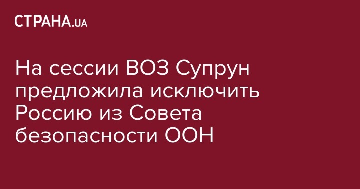 Исполняющая обязанности министра здравоохранения Украины Ульяна Супрун призвала ООН исключить Россию из Совета безопасности из-за агрессии против Украины, а также расширить антироссийские санкции.