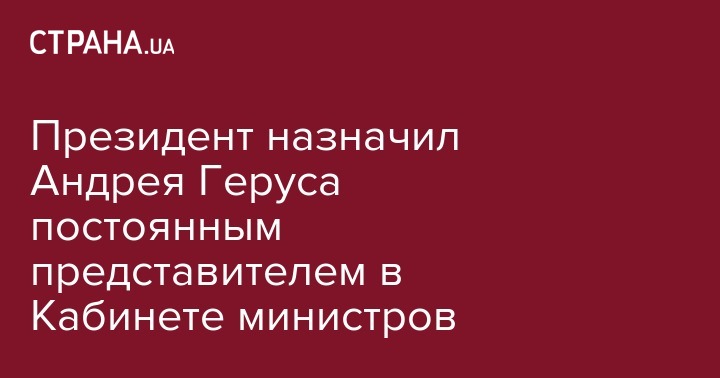 Президент Украины Владимир Зеленский указом №314 назначил Андрея Геруса своим постоянным представителем в Кабинете министров Украины.