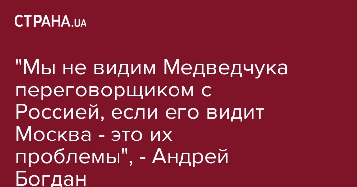Богдан уточнил, что не считает Медведчука возможным помощником в деле налаживания контактов с Россией. "Мы не видим его переговорщиком с нашей стороны. Если Россия видит его со своей - это их выбор", - заявил глава Администрации президента.