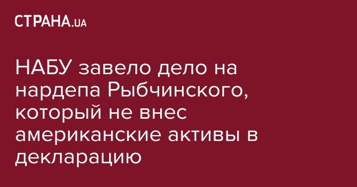 Национальное антикоррупционное бюро открыло уголовное производство по факту недекларирования депутатом Верховной Рады Евгением Рыбчинским (депутатская группа "Воля народа") денежных активов в банке и расходов за аренду дома в США.