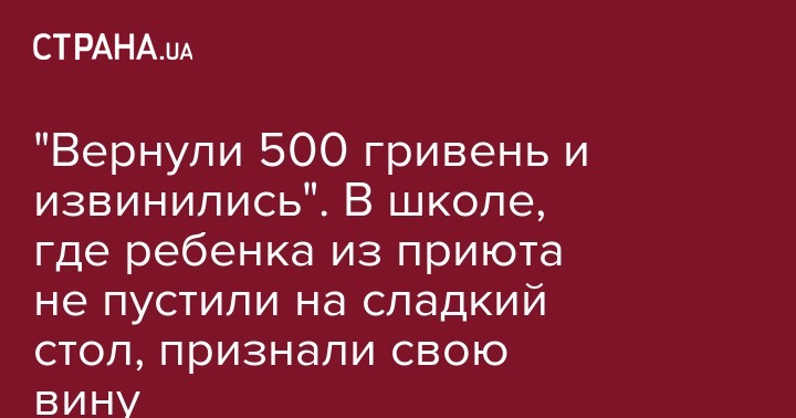 "Директор школы №19 Сухракова Л.Ф. в Каменском полностью признала вину школы и классного руководителя в случившемся. Она лично, в присутствии журналистов нескольких телеканалов, извинилась передо мной и Лерочкой. Лерочке были возвращены 500 гривен, которые она принесла за день до выпускного, чтобы ей разрешили быть на сладком столе. Как оказалось, классный руководитель Ковтуновская забрала эти деньги у девочки не на сладкий стол, а на тетради, которыми Лерочка пользовалась на протяжении года, что категорически запрещено", - сообщила бабушка.